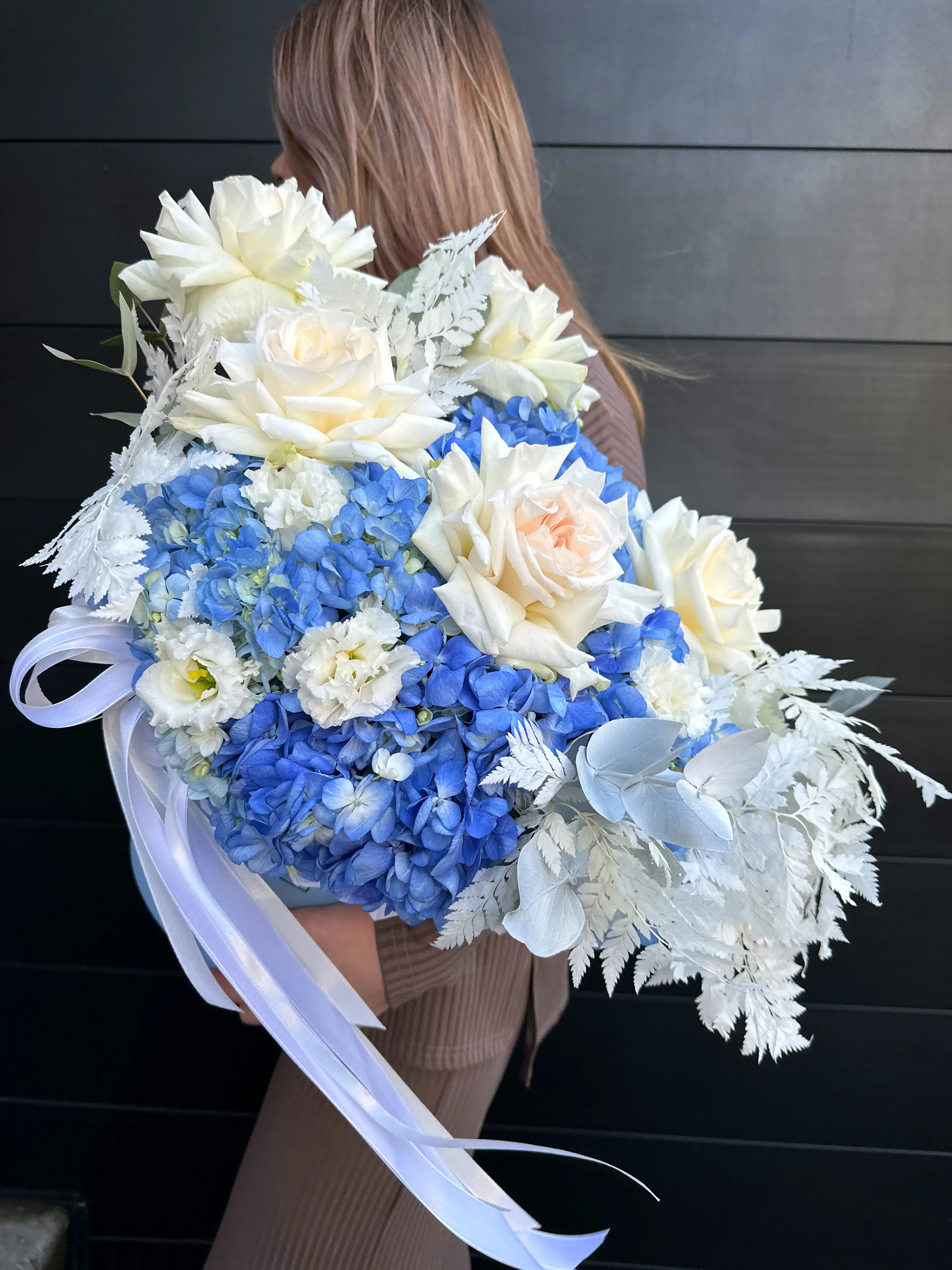 Композиция с голубой гортензией и розами — купить по цене от 7575 руб. с доставкой в Дзержинске
