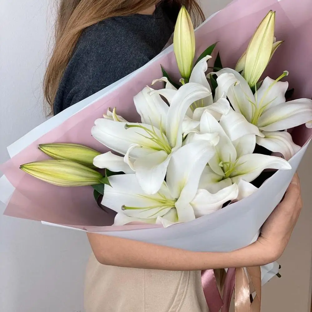У нас можно заказать Букет из 3 белых лилий в оформление за 3450 руб.