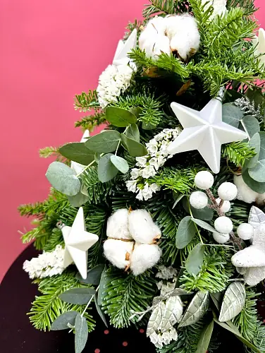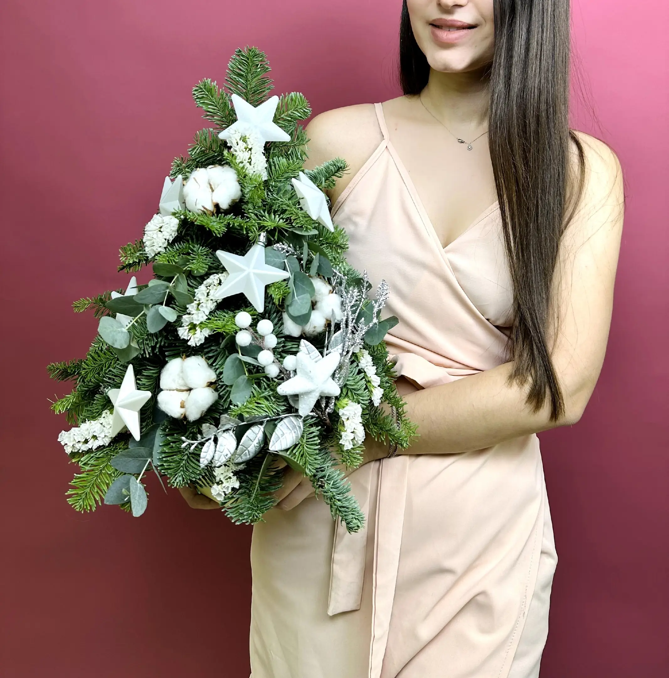 Декоративная елка с белыми игрушками — отличный выбор для подарка! На сайте вы найдете красочные фотографии, которые помогут сделать выбор. Цена букета — 4865 руб.. Закажите Декоративная елка с белыми игрушками с доставкой в Дзержинске и по области.