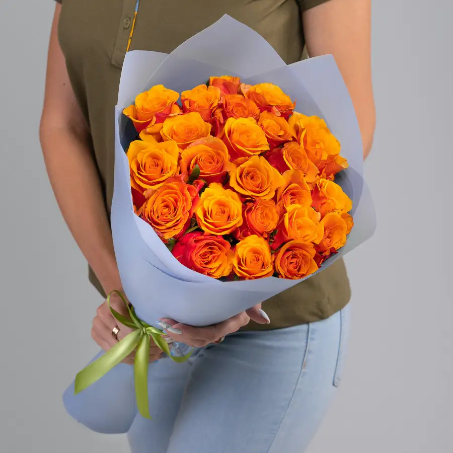 На фото - 21 Оранжевая Роза. В составе данной композиции: Роза Кенийская - 21 шт,