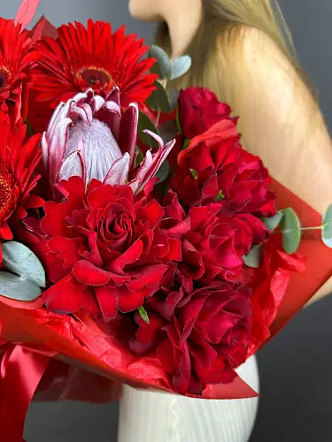 Букет красной розы и гербер