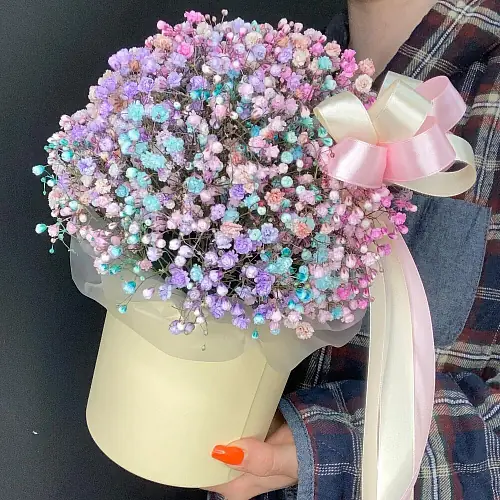 Радужная композиция с гипсофилой — купить по цене от 4130 руб. с доставкой в Дзержинске