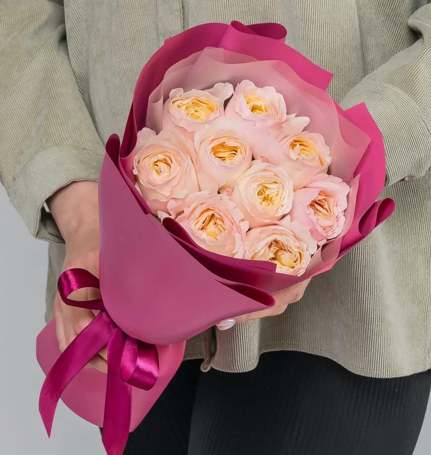 9 Пионовидных роз в упаковке — купить по цене от 3900 руб. с доставкой в Дзержинске