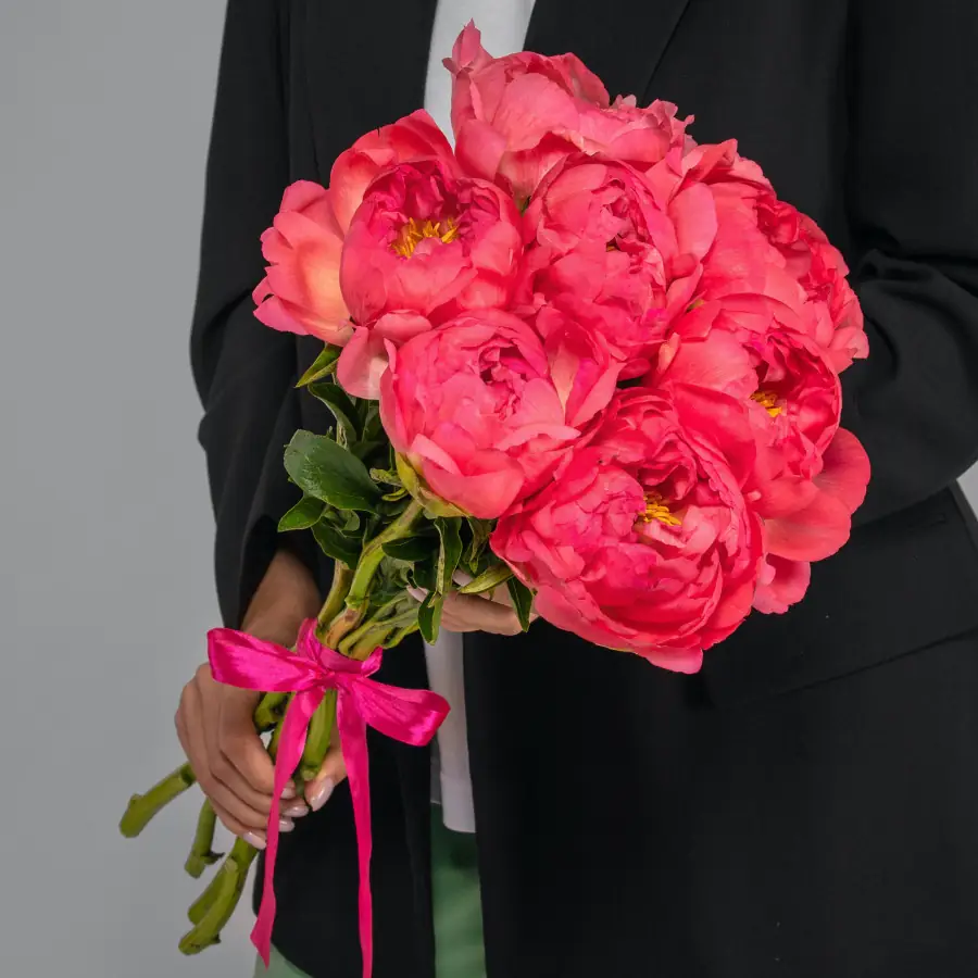 Букет коралловых пионов под ленту — отличный выбор для подарка! На сайте вы найдете красочные фотографии, которые помогут сделать выбор. Цена букета — 5420 руб.. Закажите Букет коралловых пионов под ленту с доставкой в Дзержинске и по области.