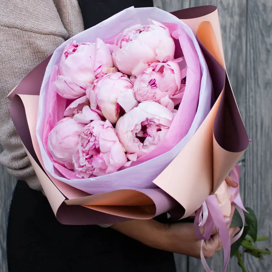 7 Пионов Сара Бернар в упаковке — купить по цене от 5820 руб. с доставкой в Дзержинске