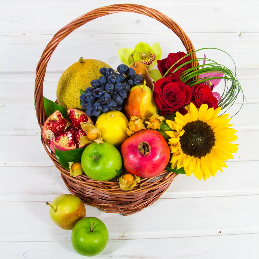 Мы Вас полностью поддерживаем! Это отличная идея! А как насчет того, чтобы разнообразить подарок и вместе с цветами послать вот такую замечательную корзину сочных фруктов?
