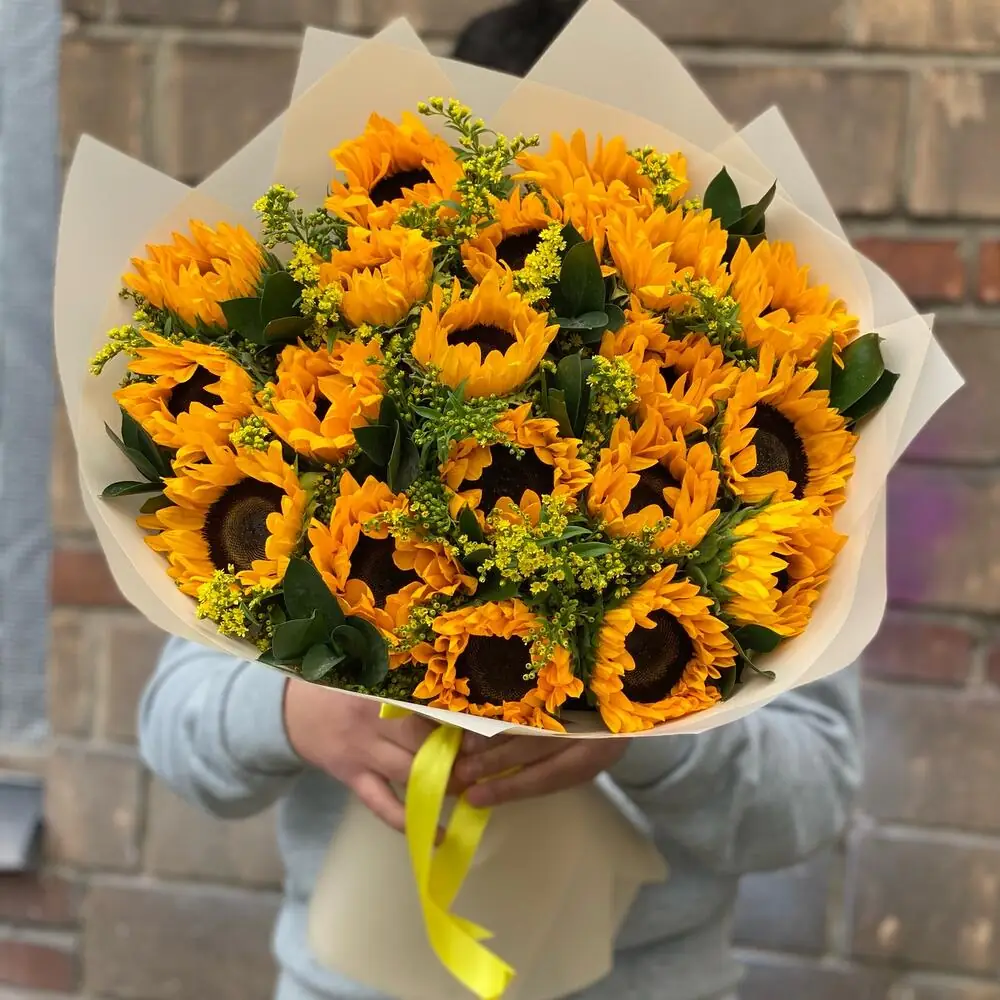 Букет из 19 Подсолнухов и солидаго — купить по цене от 8790 руб. с доставкой в Дзержинске
