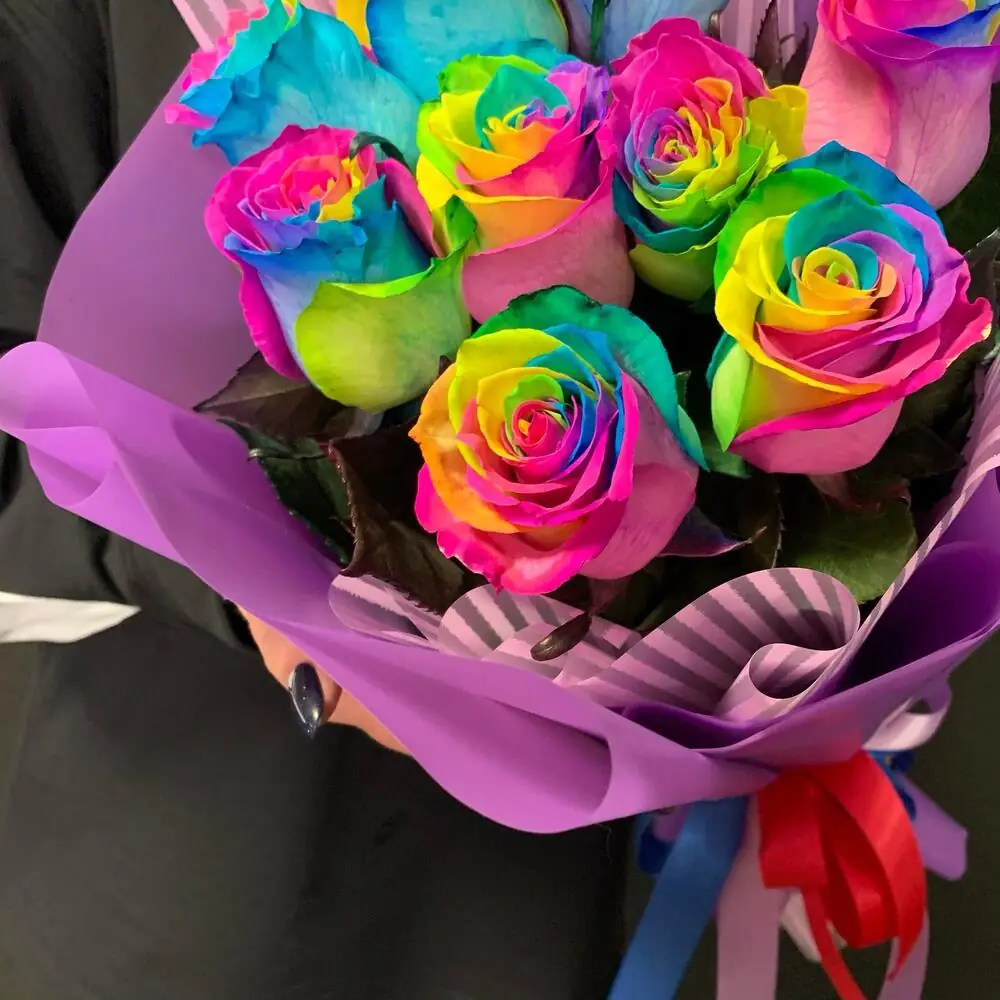 9 радужных роз в упаковке — купить по цене от 4850 руб. с доставкой в Дзержинске