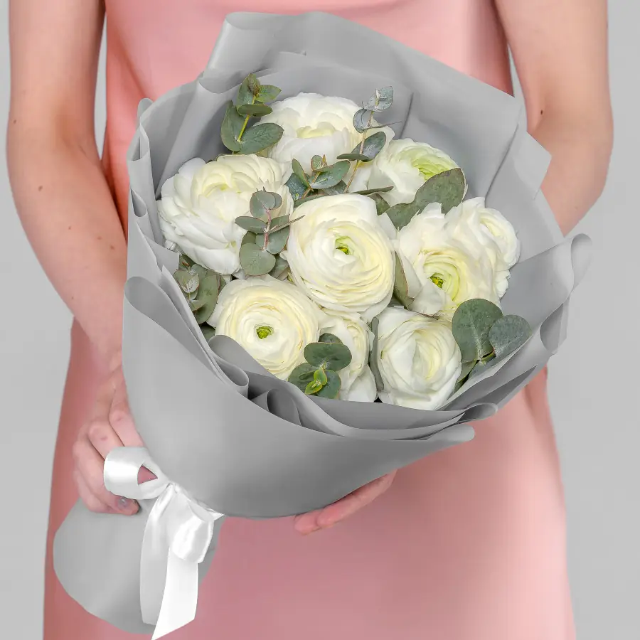 Букет из Белых Ранункулюсов и Эвкалипта — купить по цене от 4560 руб. с доставкой в Дзержинске