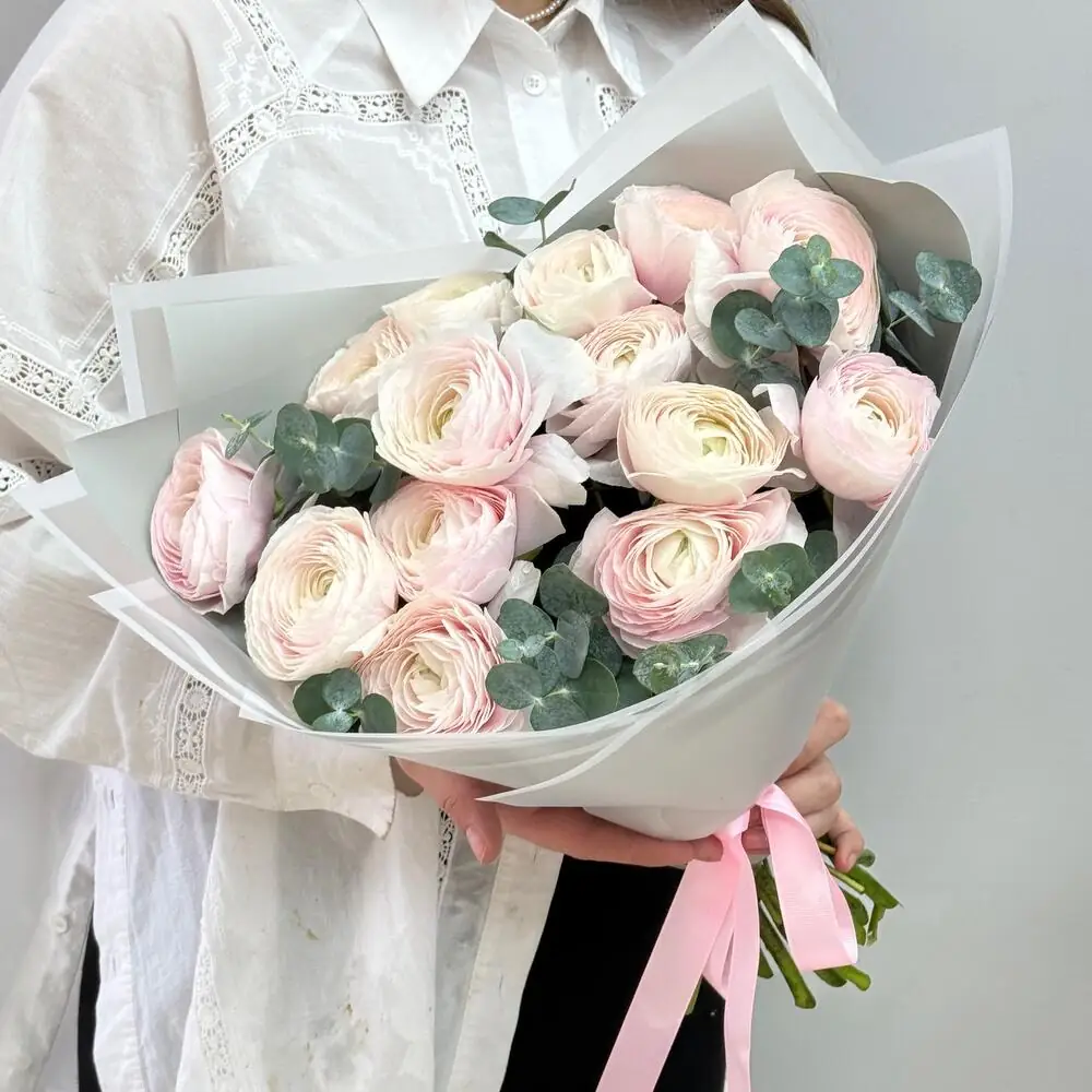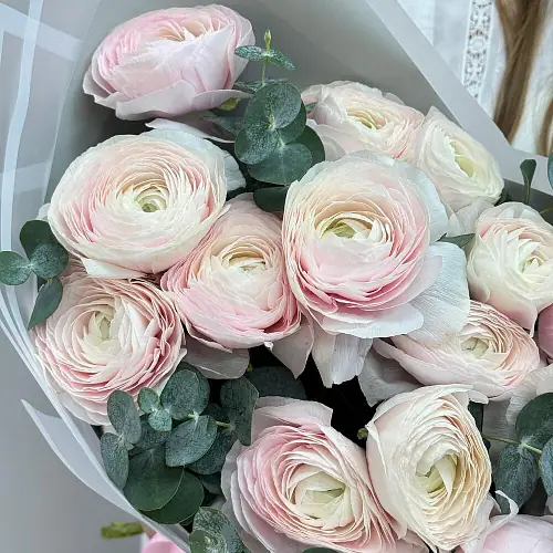 Композиция из ранункулюсов с эвкалиптом — купить по цене от 6750 руб. с доставкой в Дзержинске