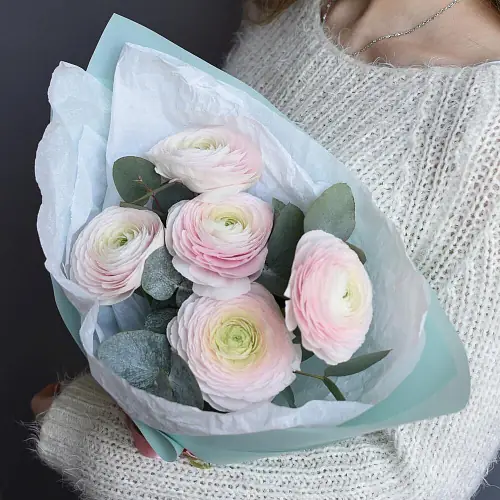Ранункулюсы с эвкалиптом 5 шт — купить по цене от 3050 руб. с доставкой в Дзержинске