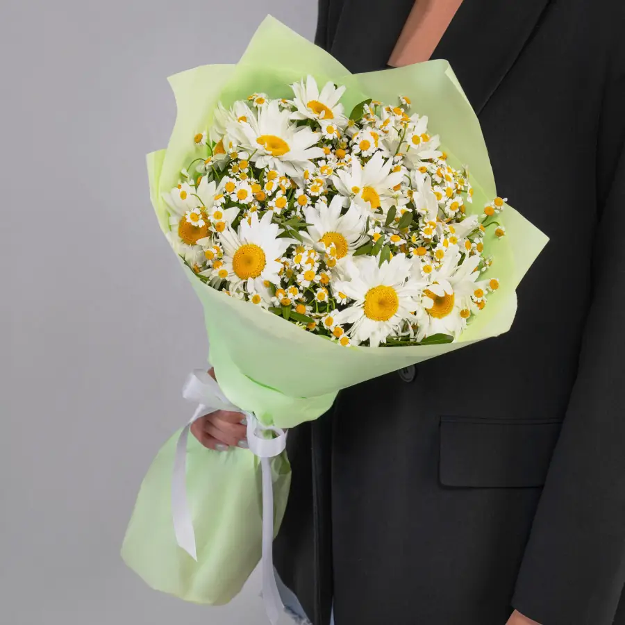 На фото - 21 Ромашка Микс в упаковке. В составе данной композиции: Ромашка - 11 шт,