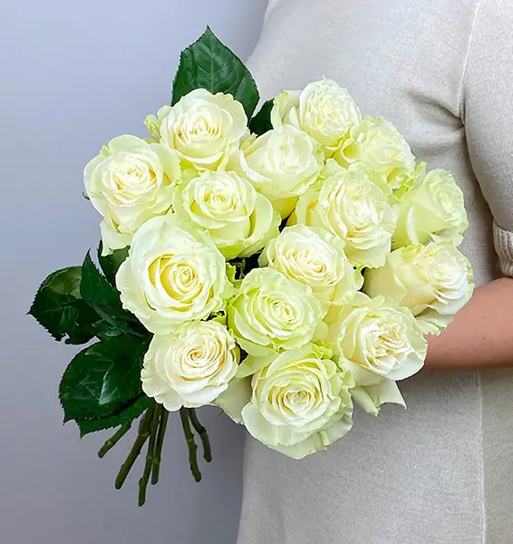 15 белых роз сорта Мондиаль для самых взыскательных.