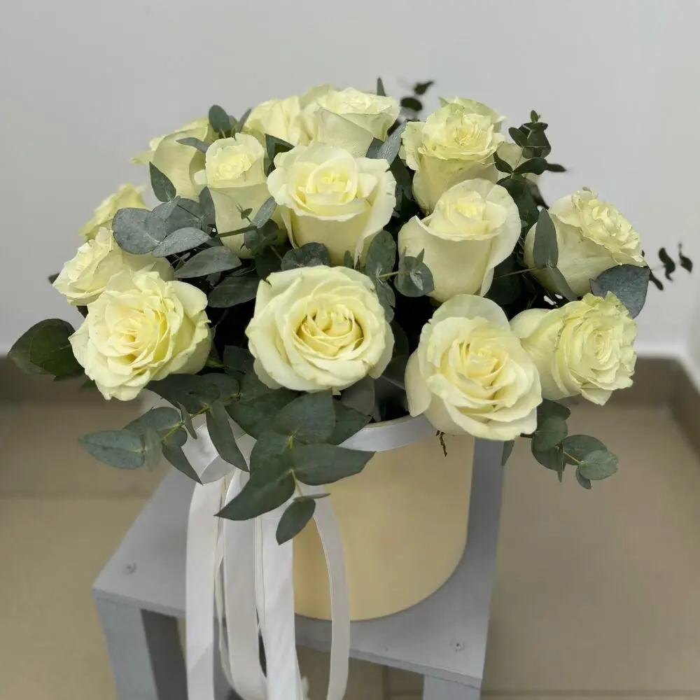 19 Белых роз в шляпной коробке — купить с доставкой в Дзержинске