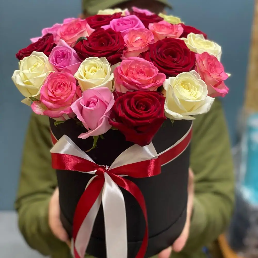 Шляпная коробка с цветами роз — купить с доставкой в Дзержинске