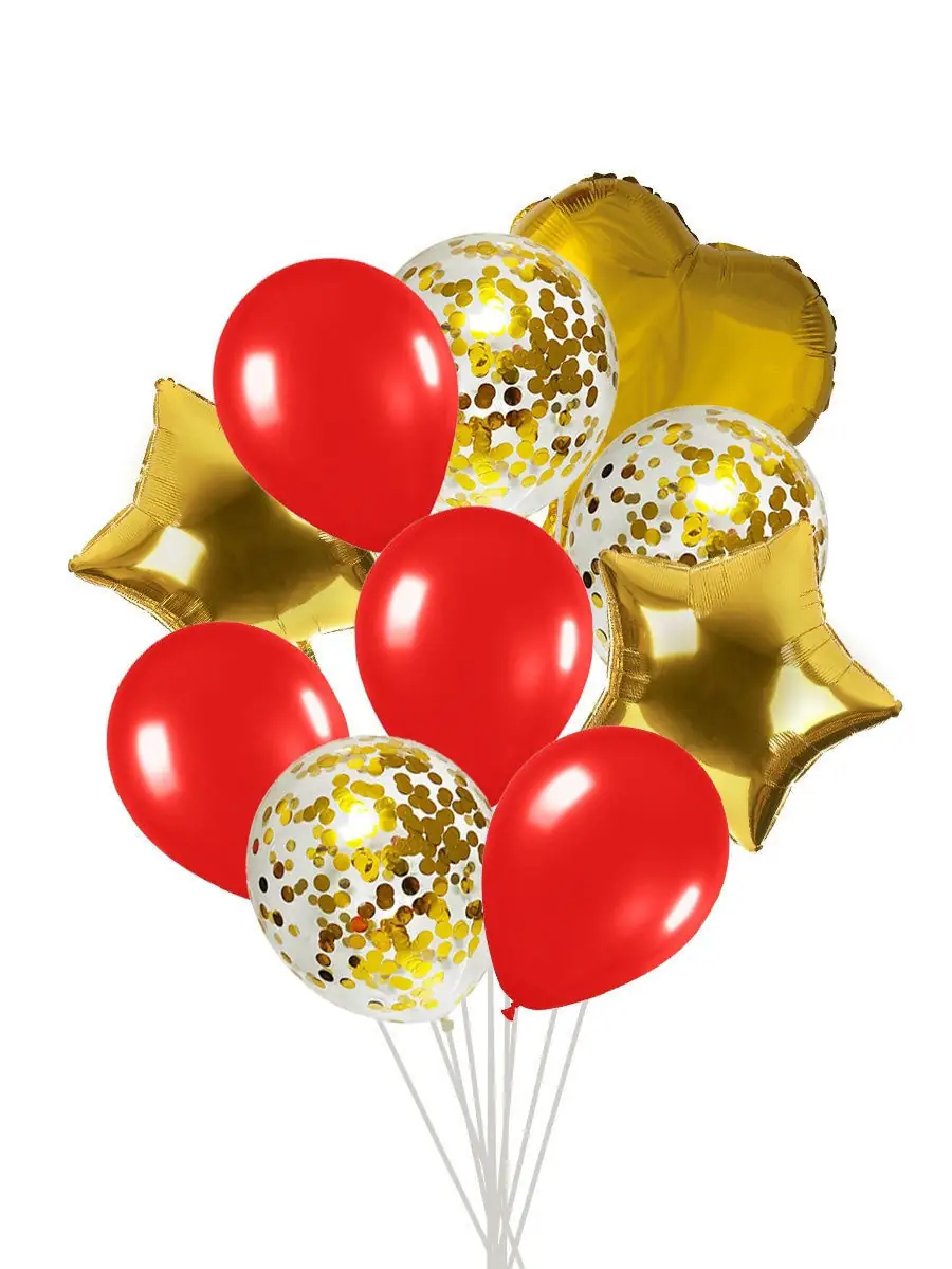 Фонтан из воздушных шаров "Красный-золото" , 10 шт