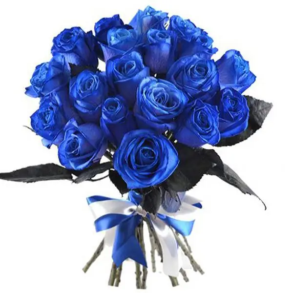 На фото - 19 Синих роз . В составе данной композиции: Роза синяя - 19 шт, Лента атласная , . На сайте buket-dzr.ru Вы найдете большой выбор недорогих букетов, цветочных композиций для любого повода. У нас можно заказать 19 Синих роз за 8500 руб.