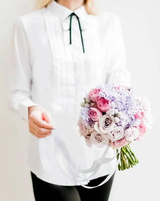 Букет составляется непосредственно в день доставки из свежих цветов, а затем с приятной улыбкой вручается адресату.