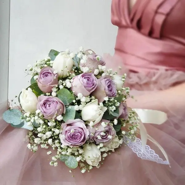 ,, . Закажите Композиция невесты из белых тюльпанов и сиреневых роз с доставкой Дзержинске и по области