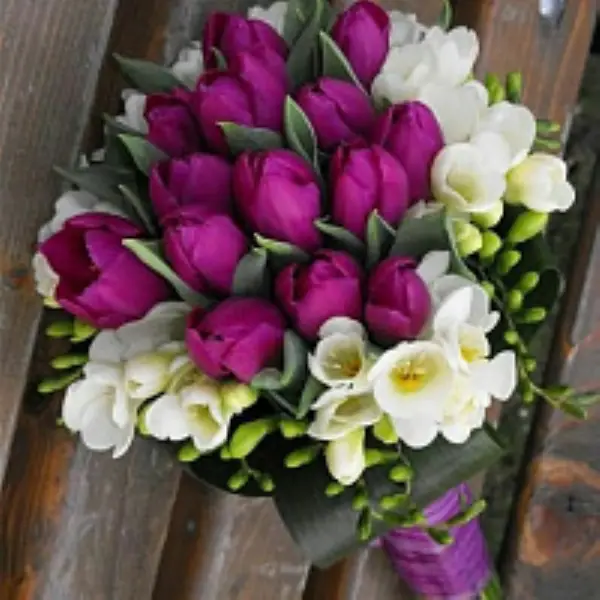 Букет невесты с тюльпанами и фрезией — отличный выбор для дополнения очаровательного образа! На сайте "Салон цветов Букет" Вы найдете свадебные букеты выполненные в разных техниках и стилях. Цена данного букета —7650 руб., а в его состав входят:Тюльпан Фиолетовый - 15 шт.,