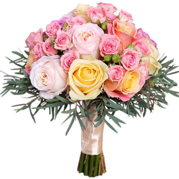 Закажите Свадебный букет с разноцветными кустовыми розами с доставкой Дзержинске и по области