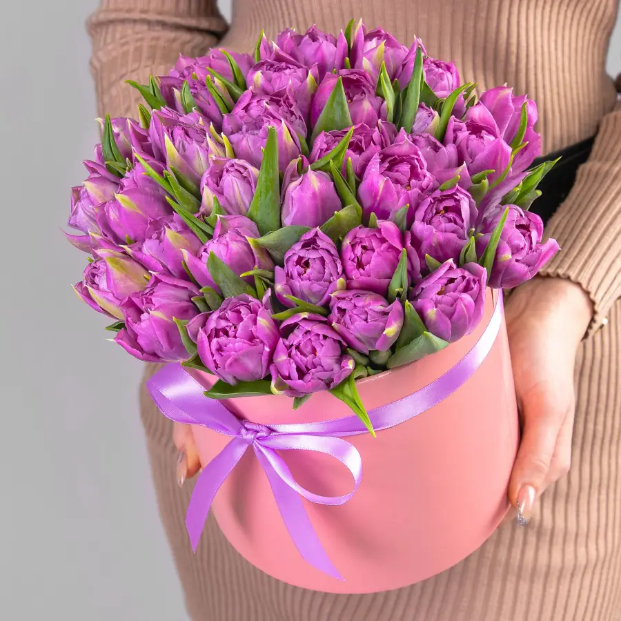 У нас можно заказать Композиция из 35 Сиреневых Пионовидных Тюльпанов в коробке за 9010 руб. с доставкой Дзержинске и по области