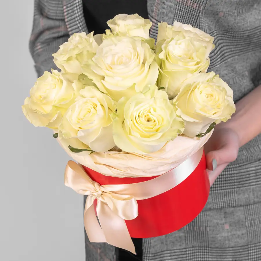На фото - Коробочка с белыми розами . В составе данной композиции: Роза - 9 шт,