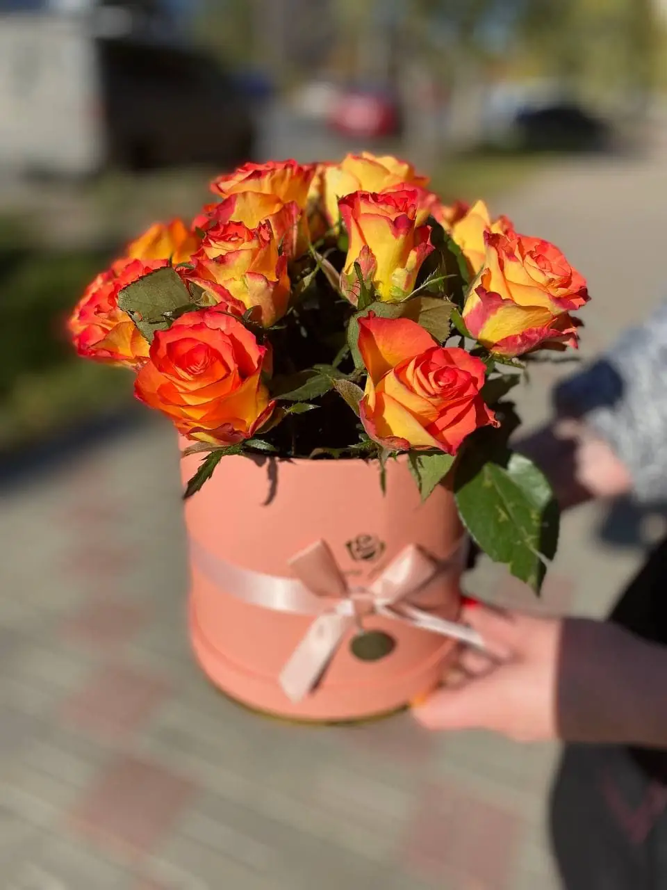 Рыжие розы в коробке — купить с доставкой в Дзержинске