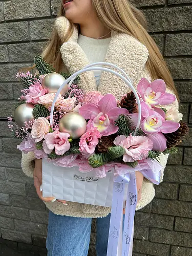 На фото - Зимняя сумка с орхидеями . В составе данной композиции: Орхидея - 3 шт,