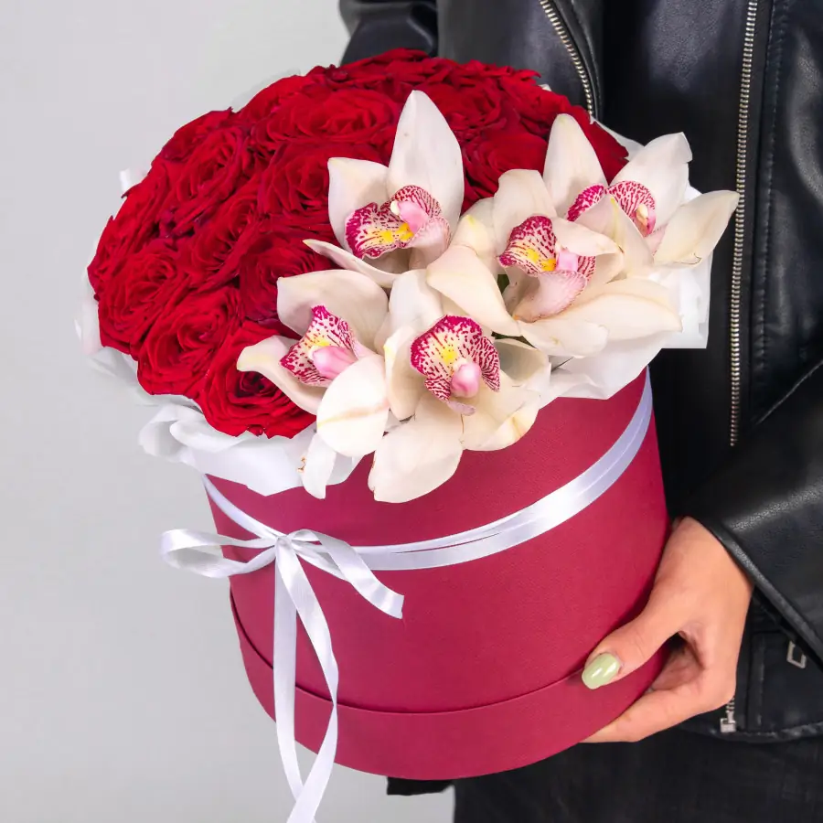 У нас можно заказать Коробка с цветами из роз и орхидей за 7805 руб. с доставкой Дзержинске и по области