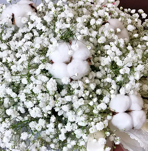 Такой букет практически вечный, так как по своей сути гипсофила - это сухоцвет