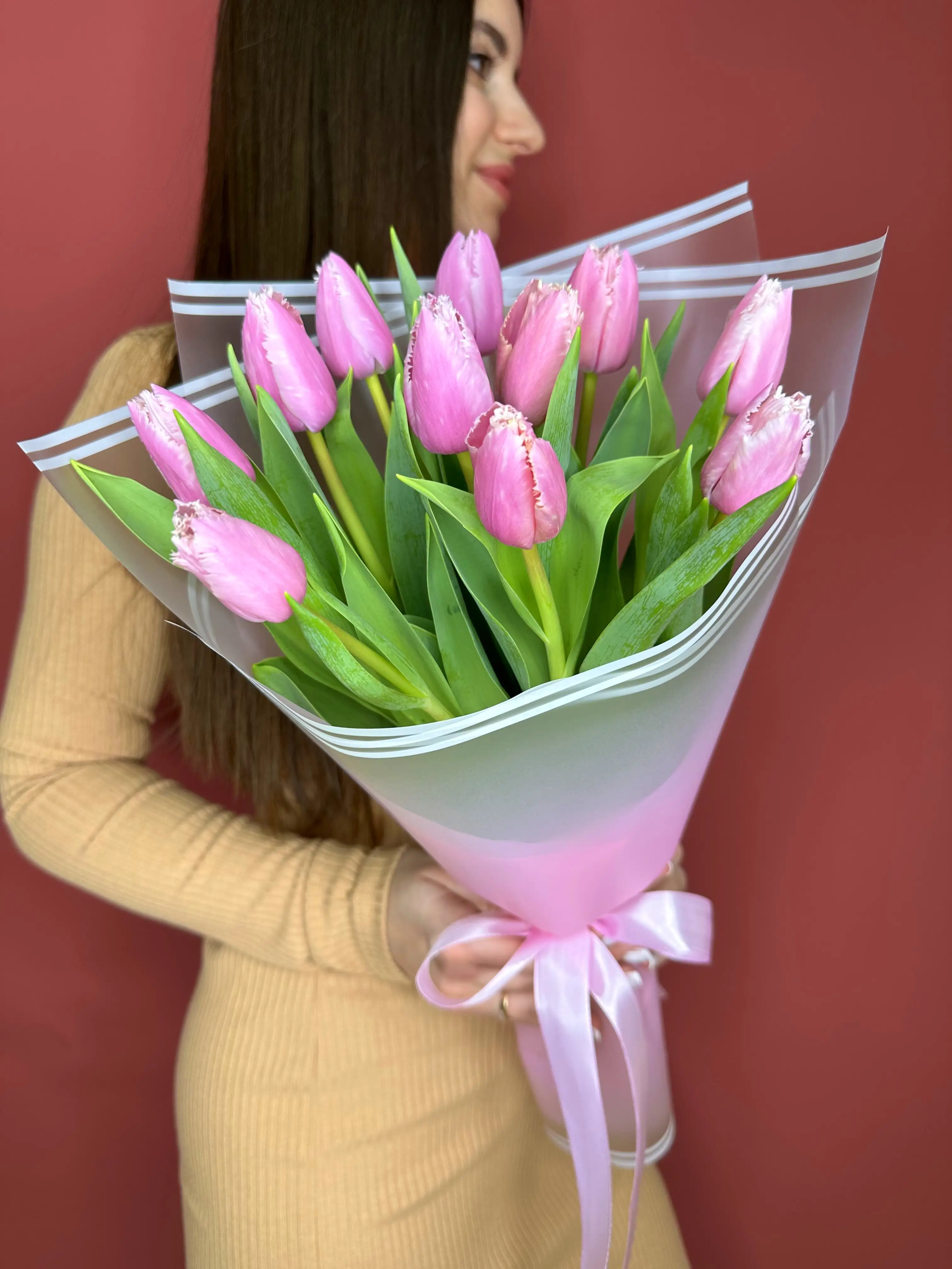 Букет состоит из 11 свежих и ароматных розовых тюльпанов, которые станут ярким акцентом любого праздника. Тюльпаны – символ любви, нежности и романтики, они подарят радость и теплоту получателю.