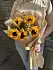 Букет живых цветов из 5 подсолнухов, оформленный в дизайнерскую упаковку, станет прекрасным подарком для любого повода.
