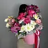 Букет оформлен в стильной шляпной коробке, что делает его еще более привлекательным и удобным для транспортировки.