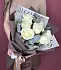 Букет живых цветов из 7 белых роз с эвкалиптом в дизайнерской упаковке
