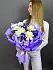 Букет живых цветов с французскими розами и ирисами в дизайнерской упаковке