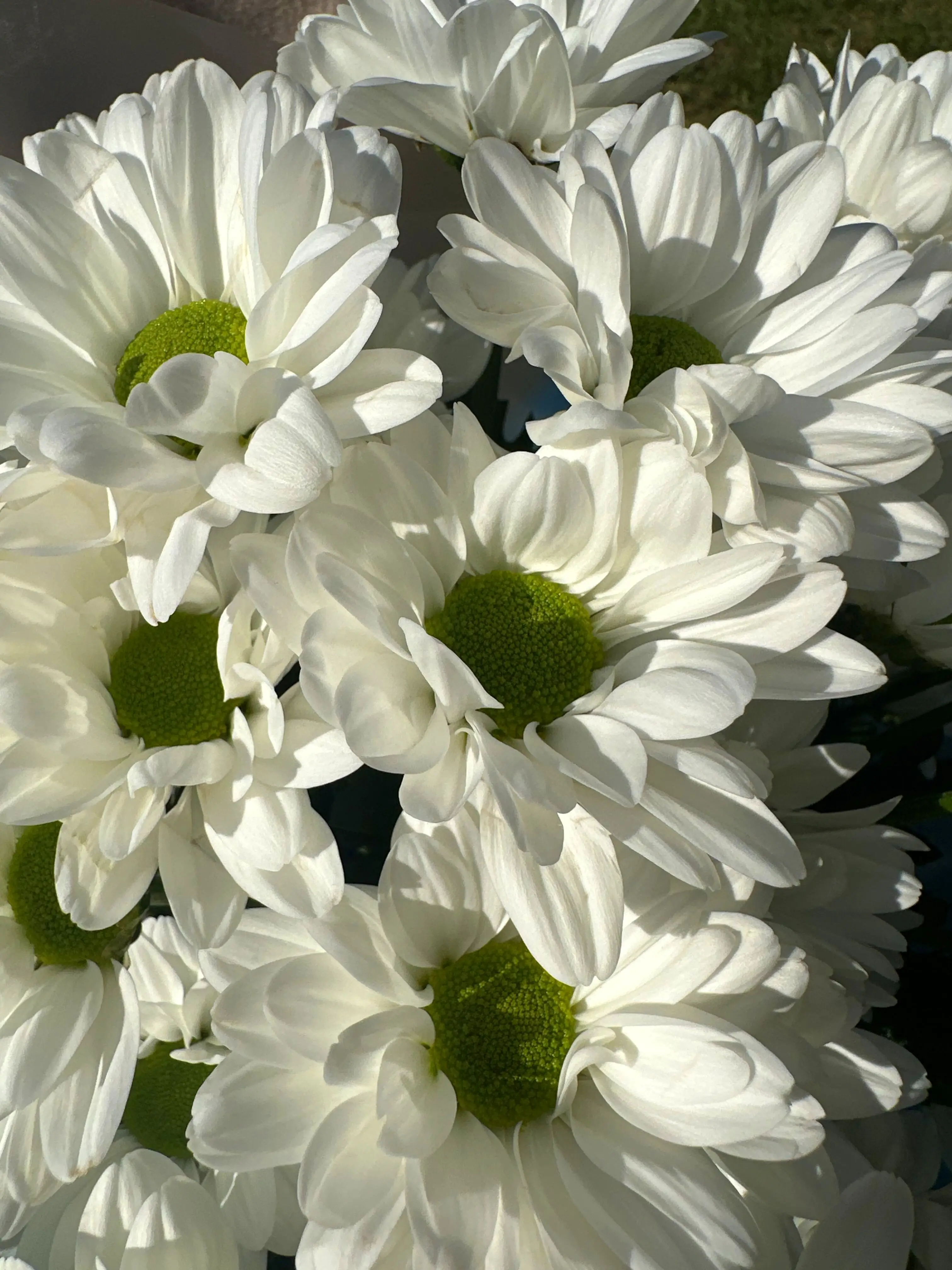 Букет живых цветов из 5 кустовых хризантем оформленный в дизайнерскую упаковку