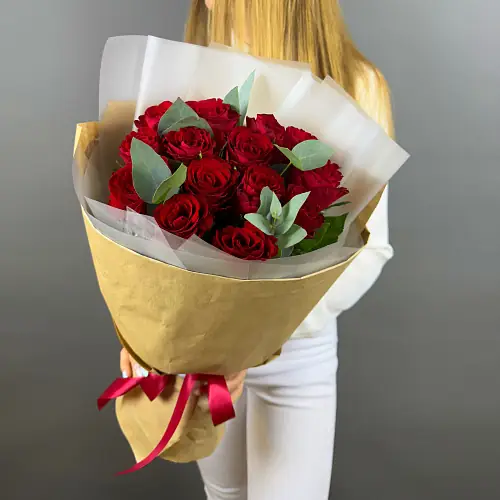 Букет живых цветов из красной розы премиум в дизайнерской упаковке