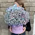 Букет живых цветов из радужной гипсофилы в нежной шляпной коробке