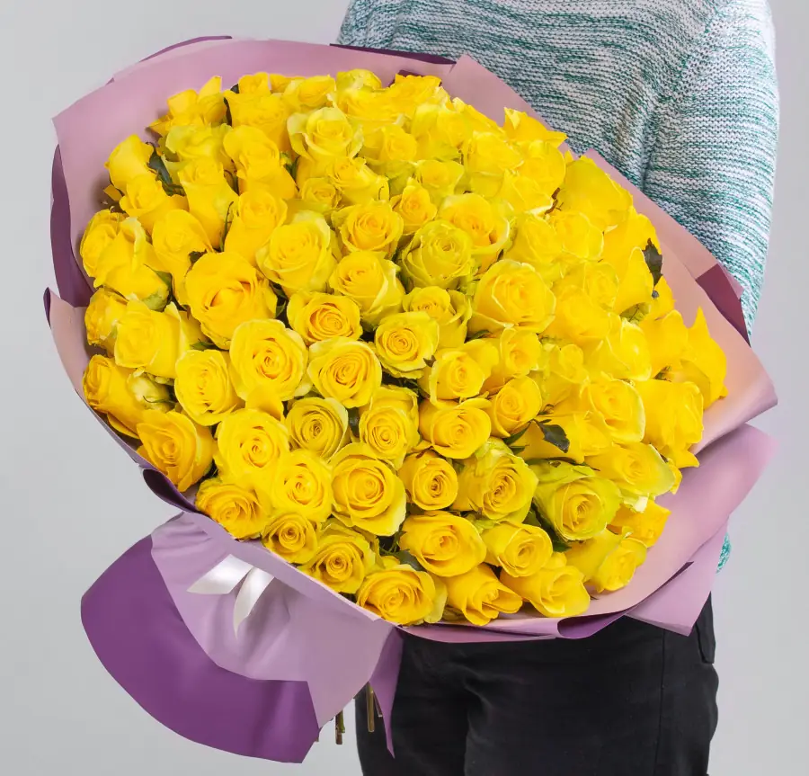 На фото - 101 Кенийская жёлтая роза . В составе данной композиции: Кенийская роза - 101 шт,
