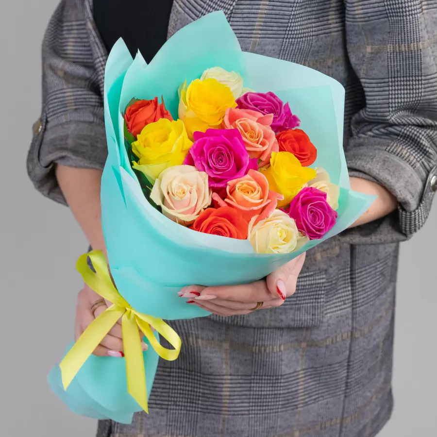 Разноцветные розы в упаковке 15 штук — купить по цене от 2585 руб. с доставкой в Дзержинске