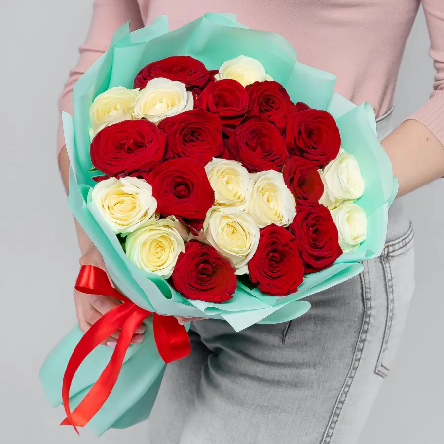 21 Кенийская красная и белая роза — купить по цене от 2939 руб. с доставкой в Дзержинске