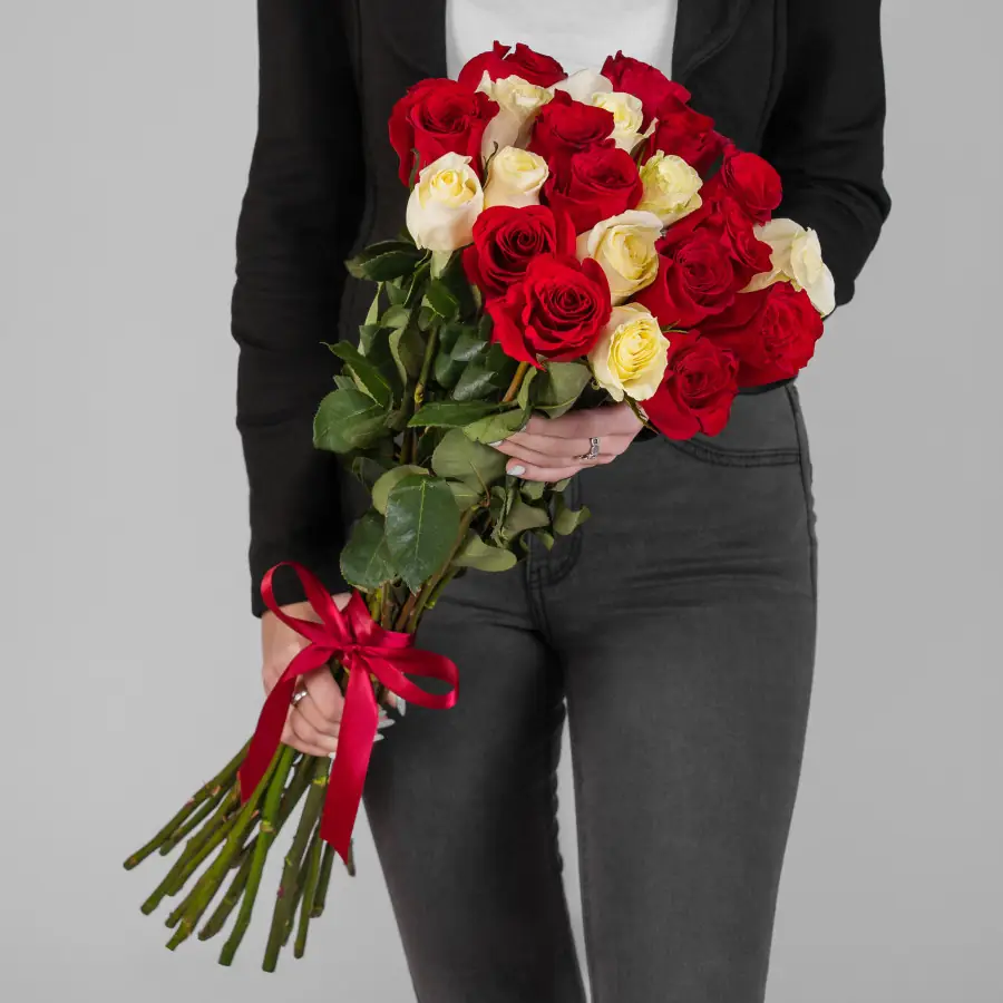 21 Красная и белая роза Эквадор — купить по цене от 6260 руб. с доставкой в Дзержинске