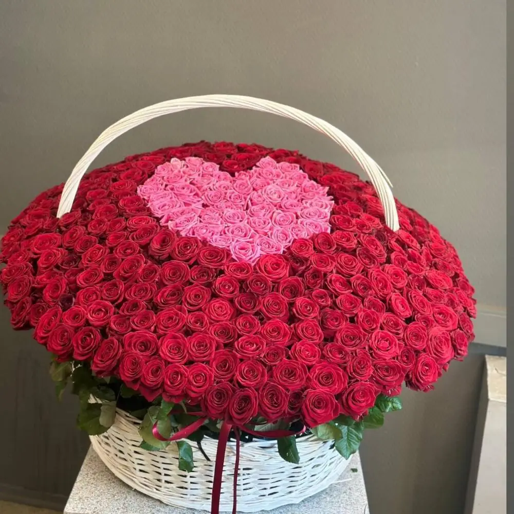 Красные розы сердце в корзине из 501 шт