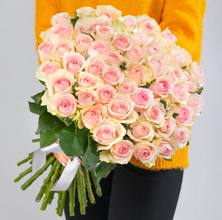 51 нежно розовая роза под ленту — отличный выбор для подарка! На сайте вы найдете красочные фотографии, которые помогут сделать выбор. Цена букета — 13460 руб.. Закажите 51 нежно розовая роза под ленту с доставкой в Дзержинске и по области.