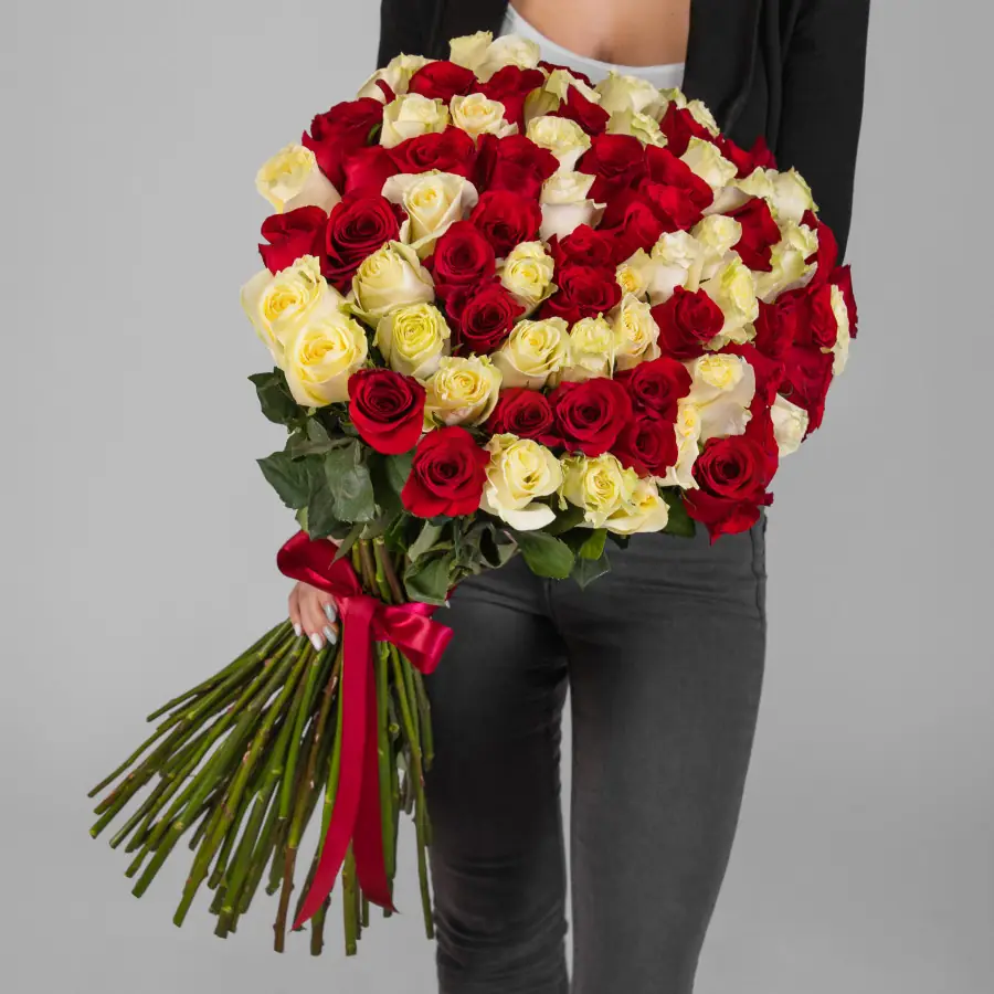 75 Красно-Белых Роз — купить по цене от 20300 руб. с доставкой в Дзержинске