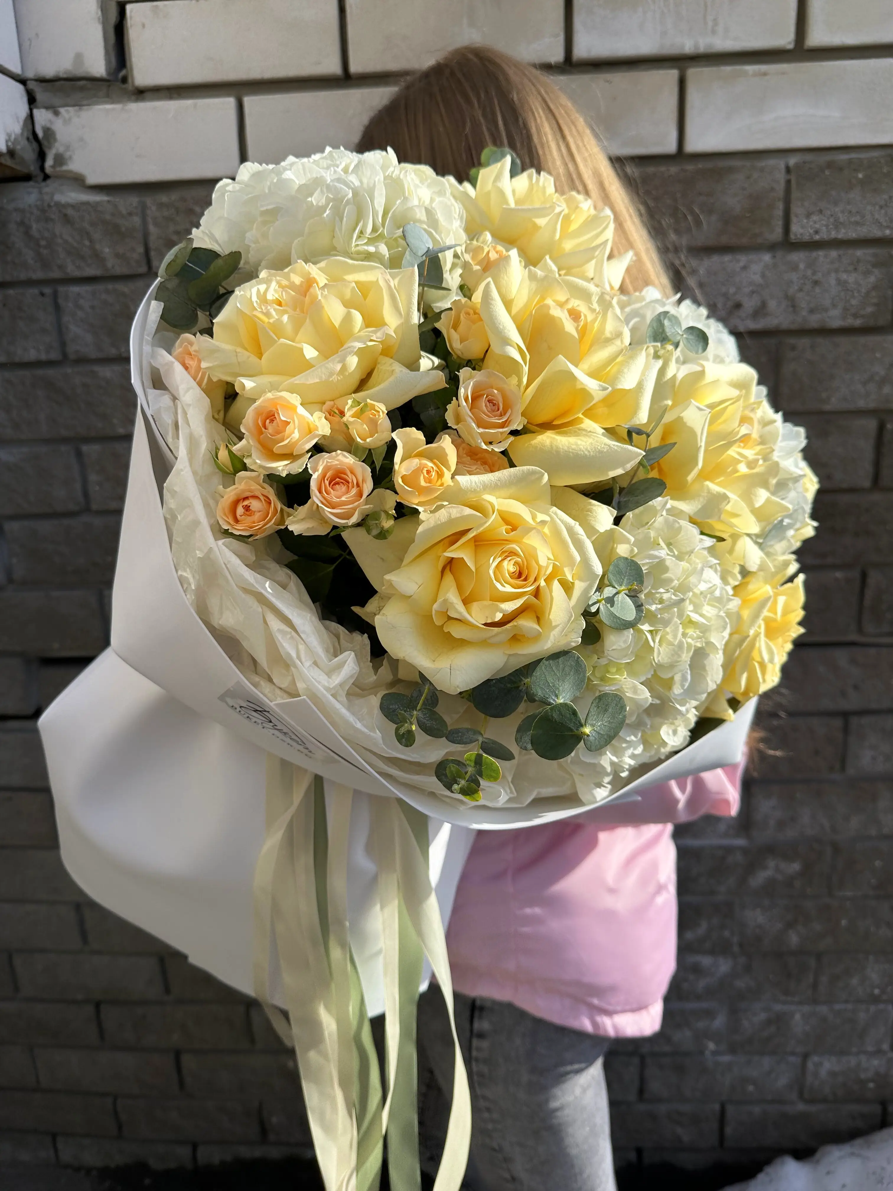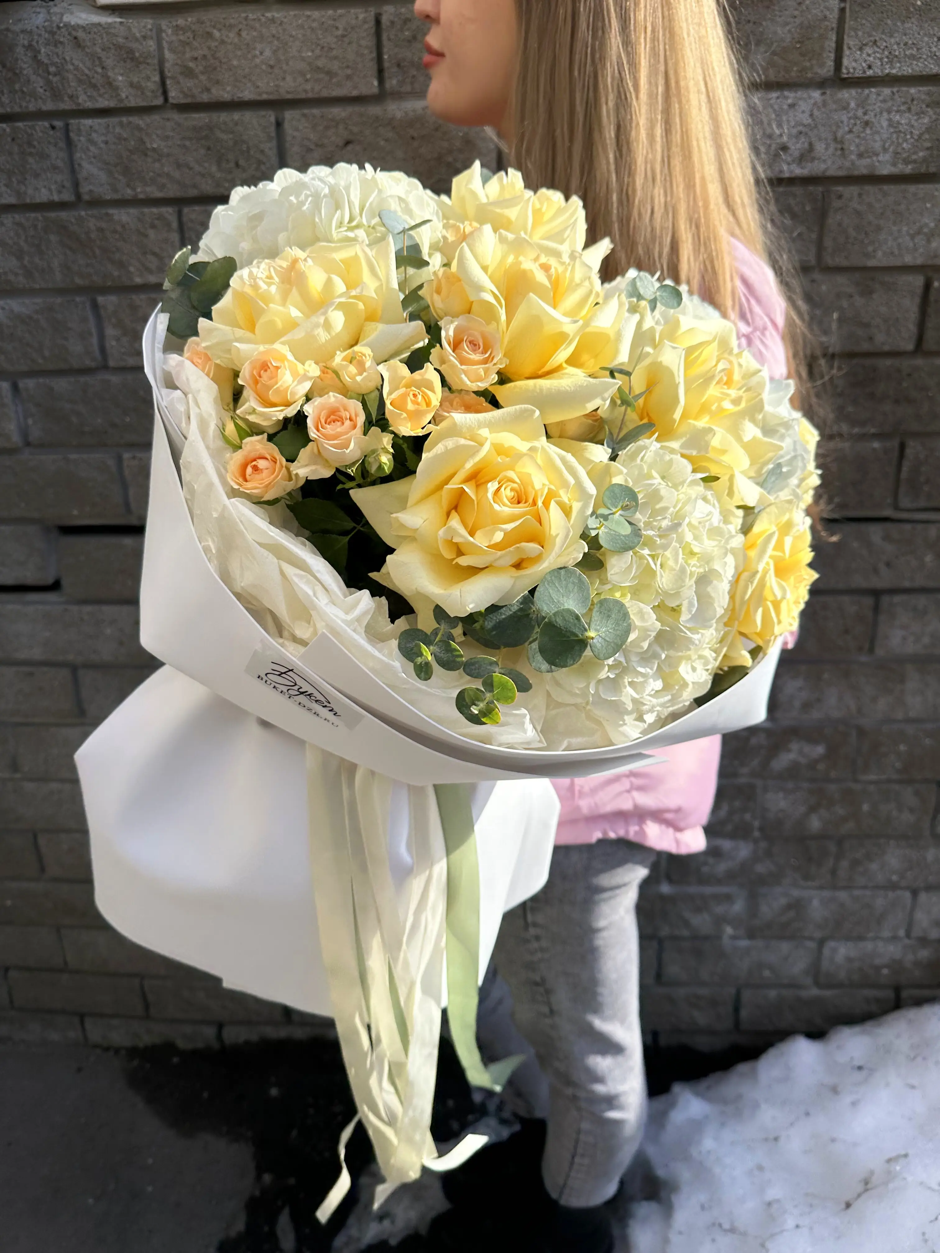 Букет с розами и гортензиями — купить по цене от 9170 руб. с доставкой в Дзержинске
