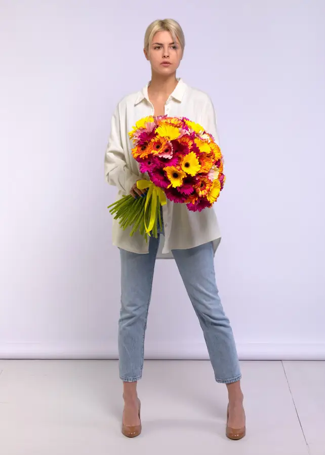 75 Гербер Микс - пример оформления на фото. Состоит из: Гербера Микс - 75 шт.