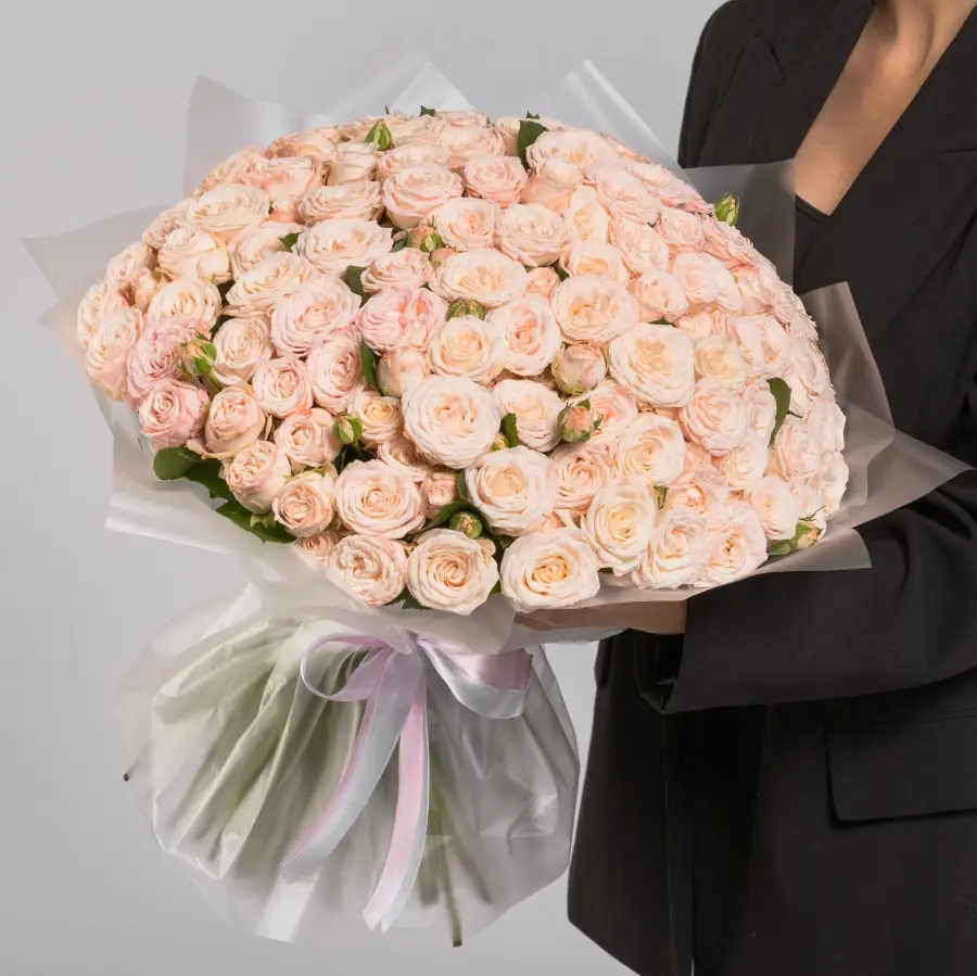 101 Пионовидная кустовая роза - пример оформления на фото. Состоит из: Роза кустовая пионовидная - 101 шт,