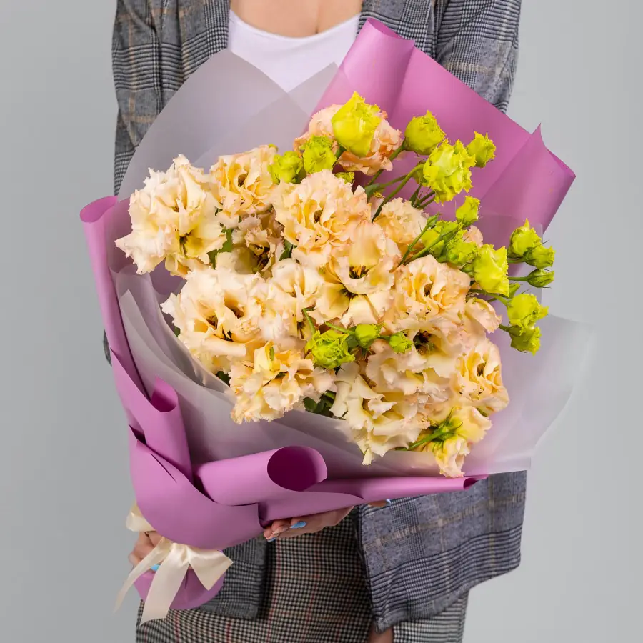 11 Лизиантусов Шампань в упаковке - пример оформления на фото. Состоит из: Эустома - 11 шт,